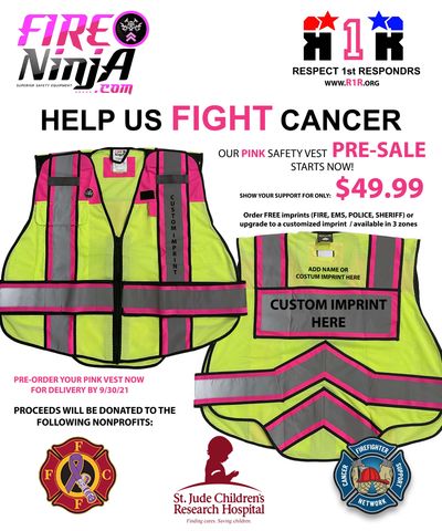 Fire Ninja created R1R (Respect 1st Responders) to assist First Responders and Front Line Workers with resources and equipment. We will be donating proceeds from the pink safety vest to cancer fighting organizations.